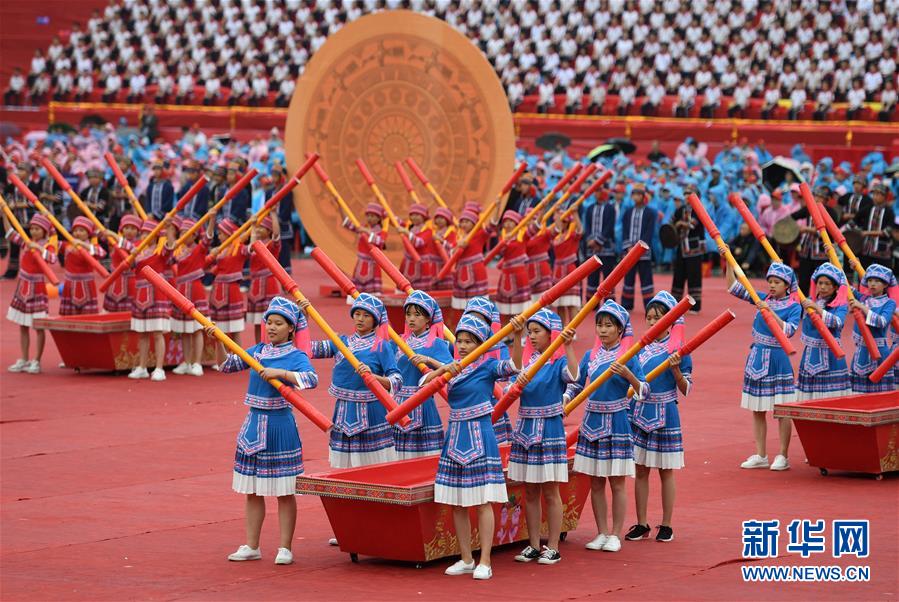 當(dāng)日,廣西大化瑤族自治縣舉行自治縣成立30周年慶祝大會,當(dāng)?shù)馗髯逋d歌載舞慶縣慶。