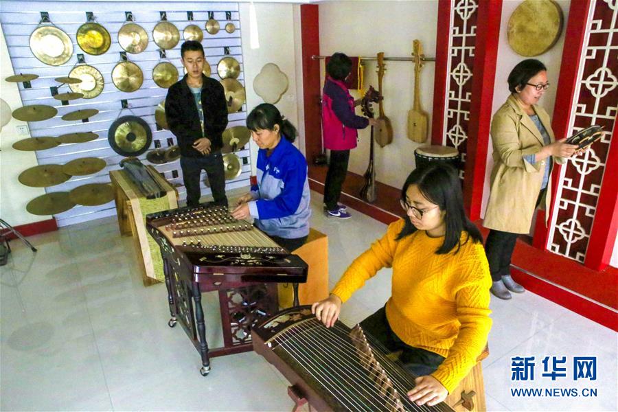 10月20日,客商在河北省饒陽(yáng)縣一家民族樂(lè)器廠挑選民族樂(lè)器。