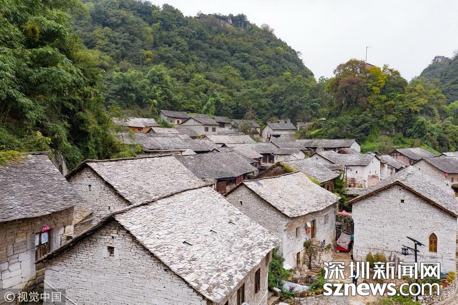 深圳新聞網(wǎng)訊 2018年9月27日,貴州安順,航拍坐落在群山中的鎮(zhèn)寧布依族苗族自治縣高蕩村。鎮(zhèn)寧高蕩村民居為石木結構干欄式石板房,建造時間五、六十年至數(shù)百年不等,建筑保存基本完好。
