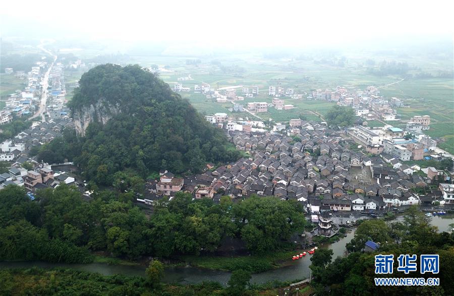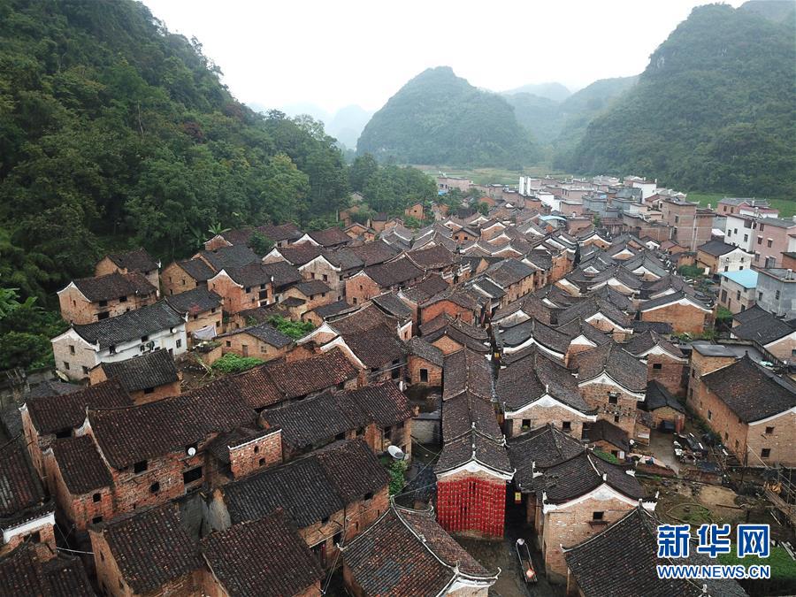 廣西富川瑤族自治縣朝東鎮(zhèn)秀水村連片民居(10月19日無人機拍攝)。 新華社記者 周華 攝