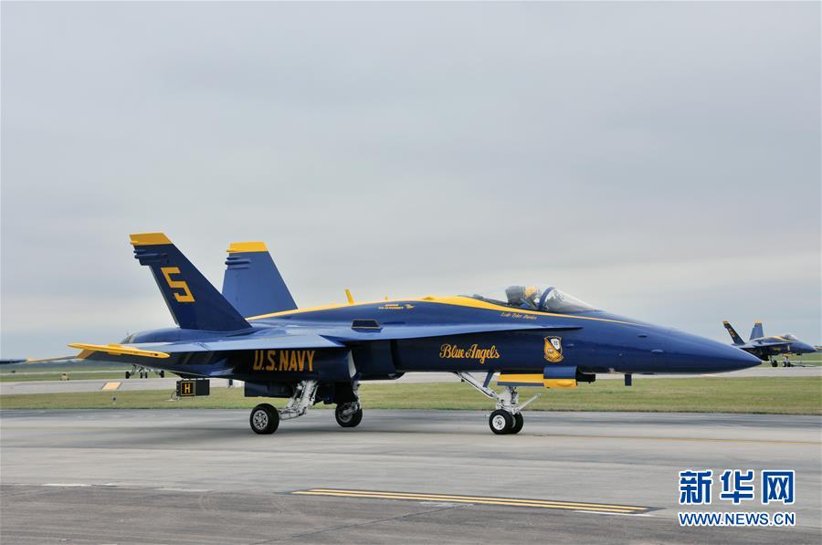10月20日,在美國休斯敦,一架美國海軍“藍(lán)天使”飛行表演隊(duì)的飛機(jī)準(zhǔn)備起飛。