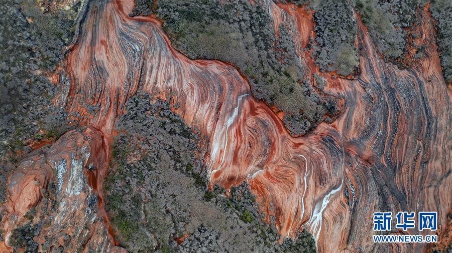 10月21日無人機拍攝的王家灣丹霞地貌。 新華社記者陶明攝