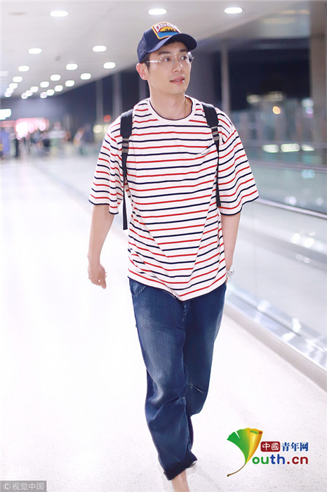 2018年10月22日,上海,朱亞文現(xiàn)身機(jī)場(chǎng)。他頭戴棒球帽,身穿條紋短袖搭配休閑哈倫褲顯得年輕又時(shí)尚,立減十歲大叔變潮男,單手插袋抿嘴略顯痞氣。