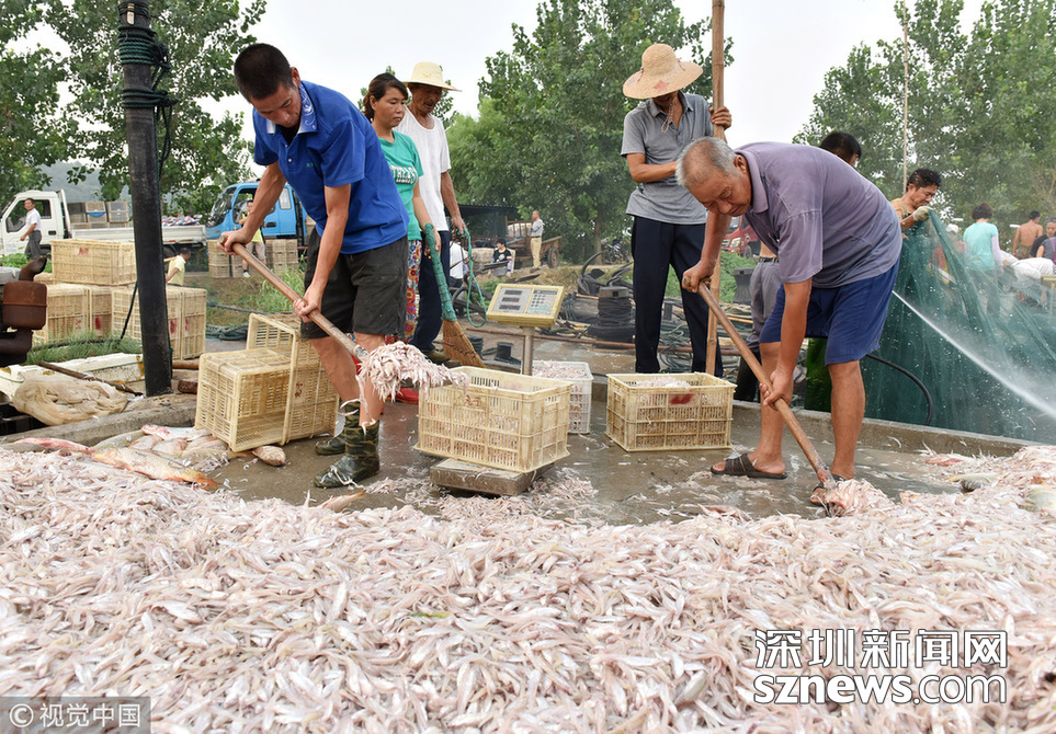 2018年8月12日,江蘇淮安洪澤湖全面開(kāi)捕第四天,漁民進(jìn)入銀魚(yú)和毛刀魚(yú)捕撈高峰期。