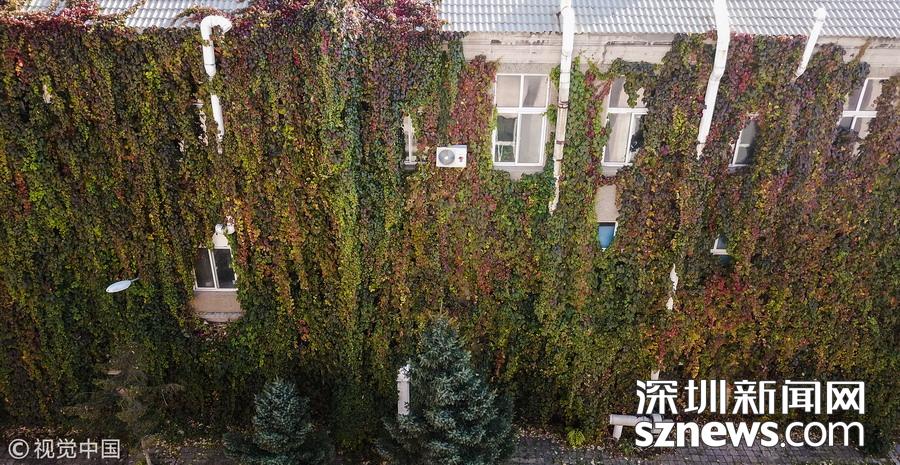 深圳新聞網(wǎng)訊 2017年10月21日,沈陽,懷遠(yuǎn)樓北側(cè)的墻面也是被爬墻虎所覆蓋,由于陽光很少能照射到植被,所以爬墻虎大都還是綠色。