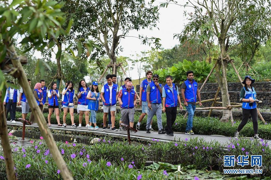 在??谑忻郎岷峪P翔濕地公園,參加濕地保護志愿服務講解員培訓的留學生志愿者一邊參觀一邊聽中國志愿者講解(10月21日攝)。 ??谑续P翔濕地公園內流水潺潺,綠草如茵。很難想象,這個市民游客休閑散步的好去處、具有強大污水凈化功能的濕地公園,兩年前還是臭氣熏天、人們避之不及的垃圾堆填場。 把生態(tài)文明建設放到更加突出的位置,近兩年來海口市以濕地城市建設為突破口,不斷創(chuàng)新城市生態(tài)治理,著力改善生態(tài)民生,在生態(tài)文明建設上闖關探路。 新華社記者 楊冠宇 攝