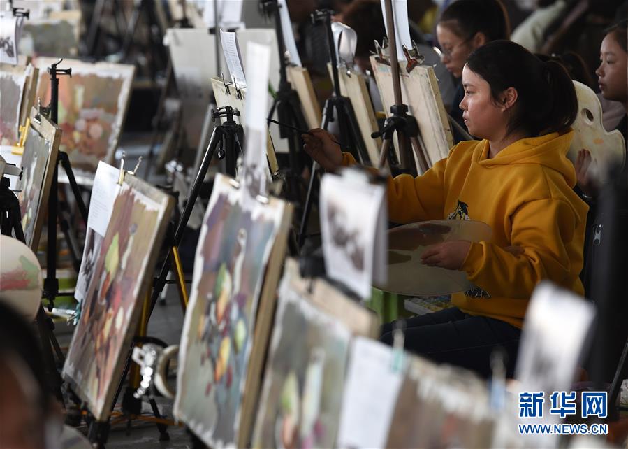10月24日,考生在南京青藍(lán)畫室教學(xué)基地考點參加色彩科目模擬考試。 新華社記者孫參攝