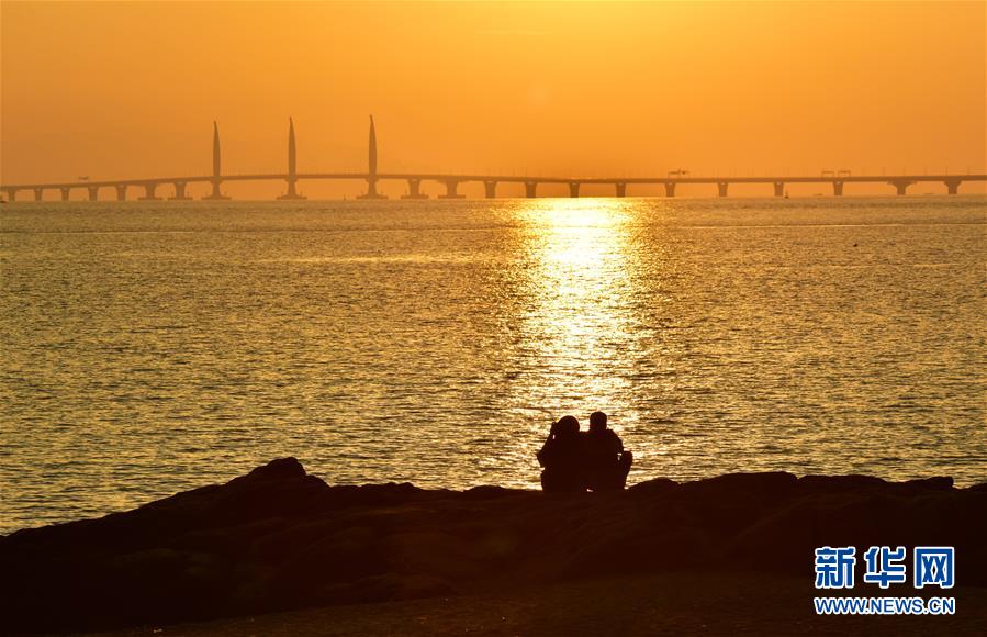 日出時分的港珠澳大橋(2018年10月22日攝)。 金秋十月,伶仃洋上海天一色、潮聲陣陣,依傍著這片中國南海水域的城市群迎來深具意義的一天。 10月23日上午,港珠澳大橋開通儀式在廣東珠海舉行,中共中央總書記、國家主席、中央軍委主席習近平出席儀式,宣布大橋正式開通。 碧波之上,一橋飛架香港、澳門、珠海三地,以氣貫長虹的“中國跨度”,飛越滄海百年的歷史風云,展現(xiàn)當代中國的雄健風采。 新華社記者殷博古攝
