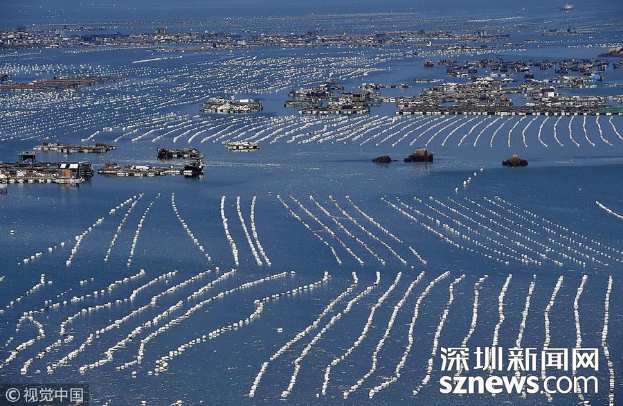 深圳新聞網(wǎng)訊  2018年10月26日,在福建連江海域上,“海上田園”網(wǎng)箱羅列,漁排上搭建的木屋錯(cuò)落成“戶”,蔚為壯觀,成為一道獨(dú)特的風(fēng)景線。福建省連江縣是中國(guó)鮑魚(yú)養(yǎng)殖第一大縣。