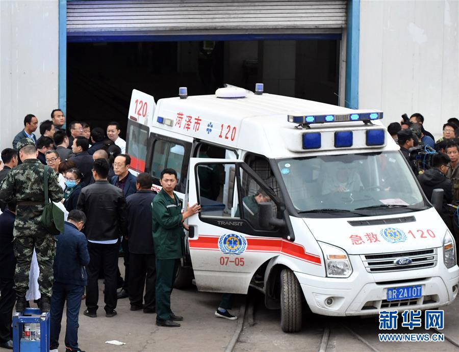 在山東龍鄆煤業(yè)沖擊地壓救援現(xiàn)場,救援人員等待獲救礦工升井(10月21日攝)。