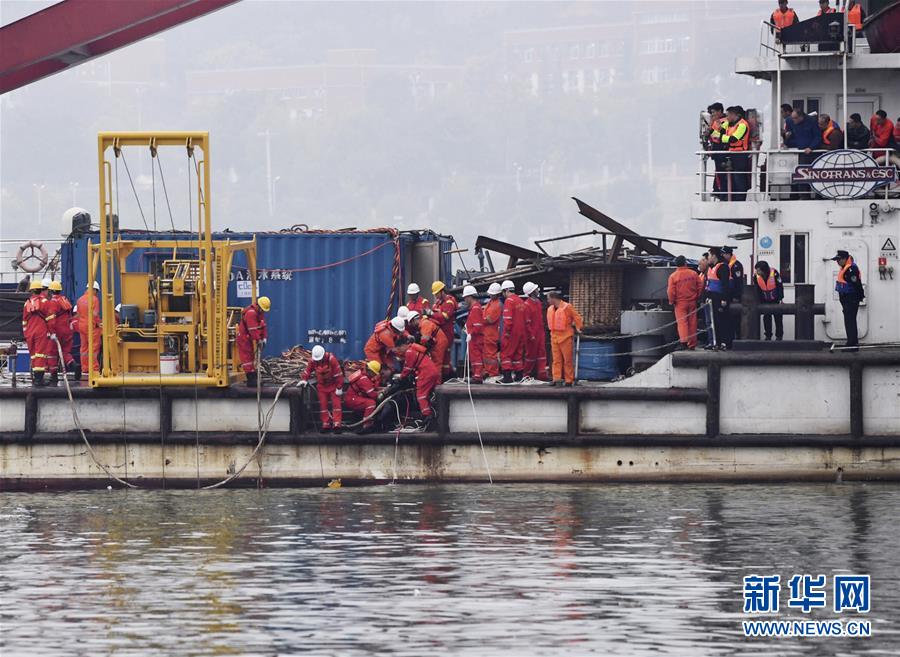 重慶萬(wàn)州墜江公交車打撈深潛設(shè)備到位 潛水員正下潛勘測(cè)