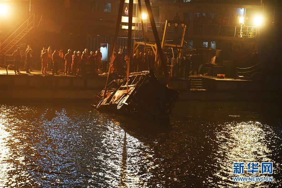 10月31日23時30分左右,記者在重慶萬州江面的打撈現(xiàn)場看到,隨著浮吊船的吊索緩緩提升,墜江的公交車被打撈出水面。 10月28日10時8分,重慶市萬州區(qū)一輛公交車行駛至長江二橋時,與一輛小轎車相撞后墜江。經(jīng)公安機(jī)關(guān)初步核實,失聯(lián)人員15人。