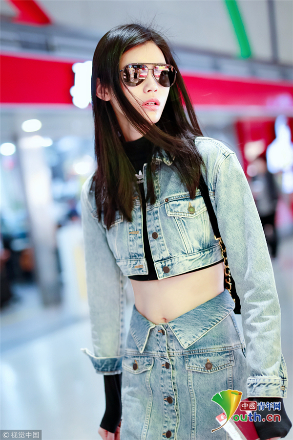 奚夢(mèng)瑤一身帥氣牛仔裝 露細(xì)腰長(zhǎng)腿顯好身材
