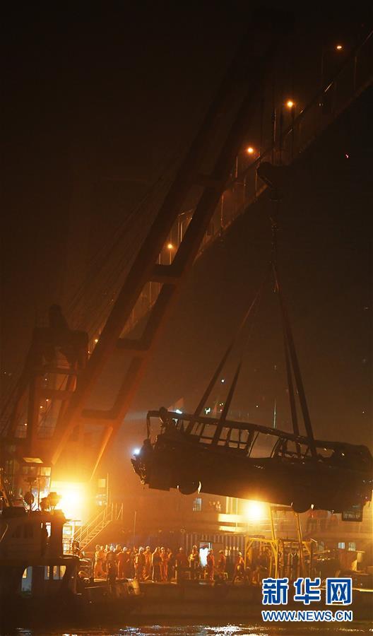 10月31日23時30分左右,記者在重慶萬州江面的打撈現(xiàn)場看到,隨著浮吊船的吊索緩緩提升,墜江的公交車被打撈出水面。 10月28日10時8分,重慶市萬州區(qū)一輛公交車行駛至長江二橋時,與一輛小轎車相撞后墜江。經(jīng)公安機關(guān)初步核實,失聯(lián)人員15人。