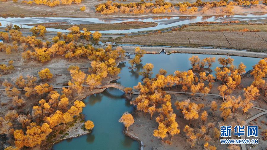 10月中旬以來(lái),新疆天山以南的塔里木河流域胡楊葉片由綠變黃,如同披上了金色外套。 2000年起,塔里木河19次向下游生態(tài)輸水,累計(jì)下泄生態(tài)水76.2億立方米。多年的持續(xù)輸水結(jié)束了塔里木河下游河道連續(xù)斷流30年的歷史,緩解了流域生態(tài)退化的被動(dòng)局面,塔里木河下游動(dòng)植物物種顯著增加、水環(huán)境得到有效改善。