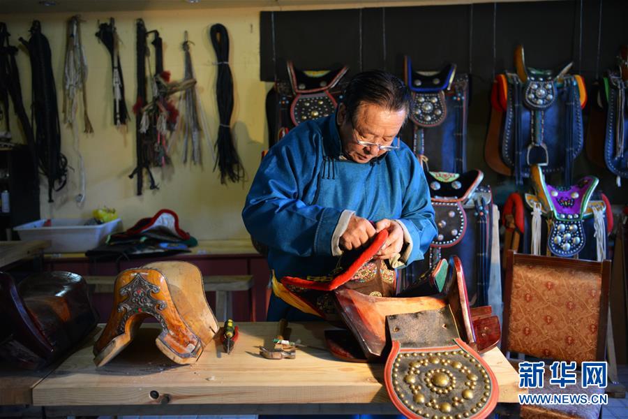 10月31日,在內(nèi)蒙古自治區(qū)通遼市科爾沁左翼后旗,套格敦白乙在工作室制作馬鞍。 內(nèi)蒙古自治區(qū)通遼市科爾沁左翼后旗的老匠人套格敦白乙是“蒙古族馬具制作技藝”國家級非遺項(xiàng)目的代表性傳承人,制作馬具長達(dá)40余年,他的制作技藝體現(xiàn)了科爾沁馬具做工精良、用料考究、使用舒適、裝飾華麗的特點(diǎn)。 蒙古族被譽(yù)為“馬背上的民族”,馬具制作歷史悠久,在蒙古族傳統(tǒng)手工藝中占有重要地位。2008年,蒙古族馬具制作技藝被列入國家級非物質(zhì)文化遺產(chǎn)名錄。 新華社記者鄒予攝