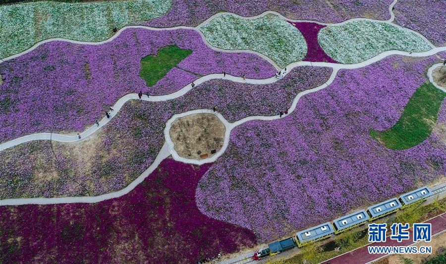 11月2日,游客乘坐觀光小火車(chē)觀賞“五彩花?!保o(wú)人機(jī)拍攝)。