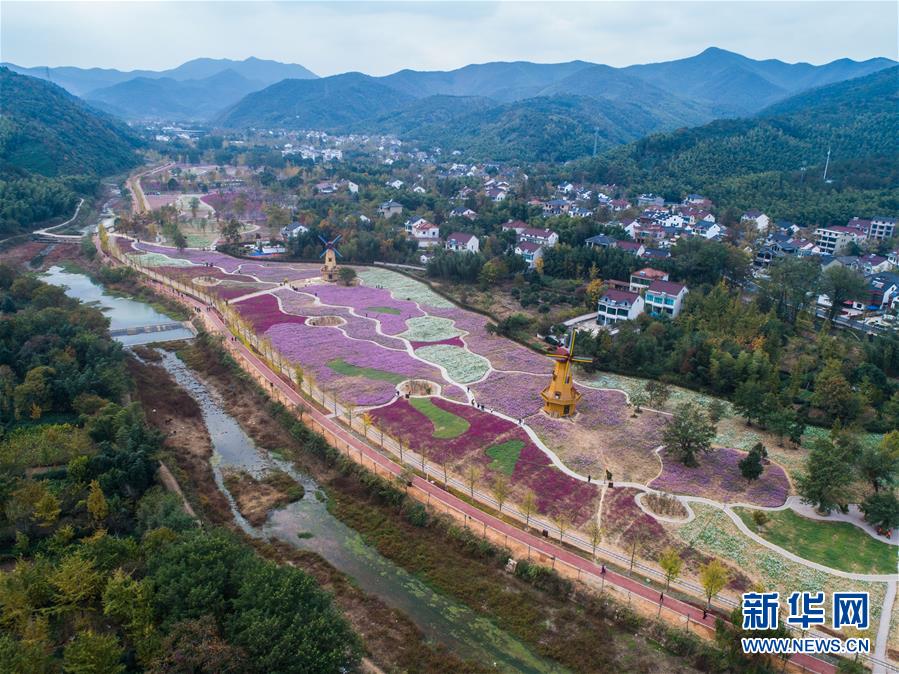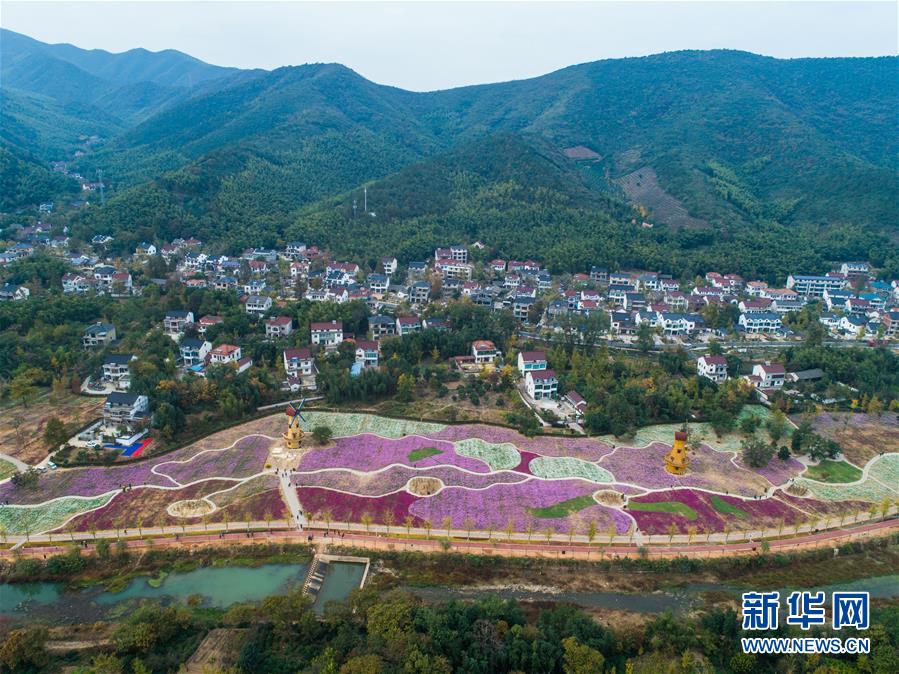 11月2日,空中俯瞰小浦鎮(zhèn)的“五彩花海”,多彩的花海與金黃的銀杏林構(gòu)成了一幅美麗的秋季風(fēng)景(無人機(jī)拍攝)。 新華社記者 徐昱 攝