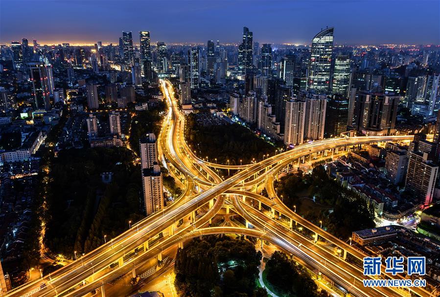 這是11月2日拍攝的上海延安高架路與南北高架路交匯處的立交橋。 首屆中國國際進(jìn)口博覽會即將在上海開幕。美麗的上海張開懷抱,迎接八方來客。 新華社記者 李鑫 攝