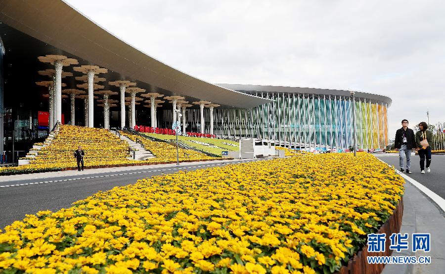 國(guó)家會(huì)展中心(上海)擺滿鮮花(11月2日攝)。首屆中國(guó)國(guó)際進(jìn)口博覽會(huì)即將在上海開(kāi)幕。美麗的上海張開(kāi)懷抱,迎接八方來(lái)客。 新華社記者 方喆 攝
