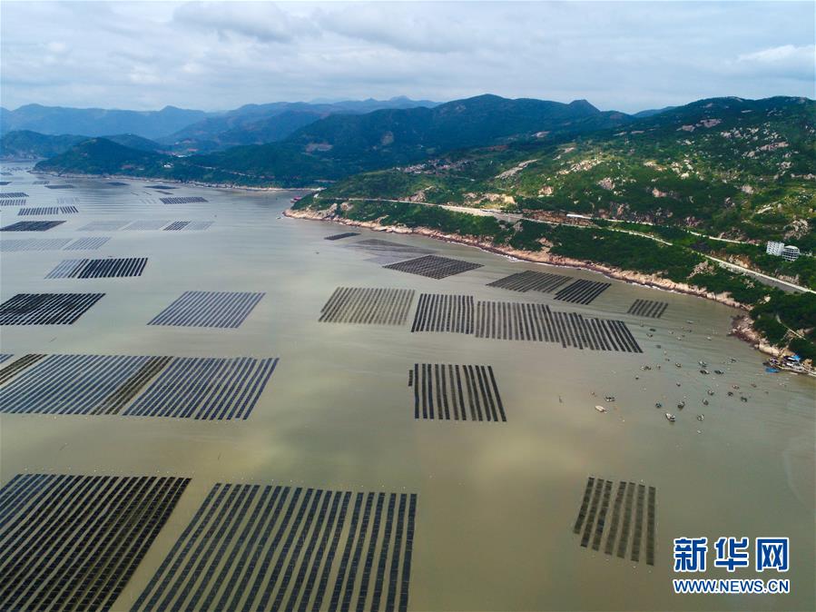 福建莆田蔣山村的千畝紫菜種植基地(10月24日無人機(jī)拍攝)?! ⌒氯A社記者姜克紅 攝