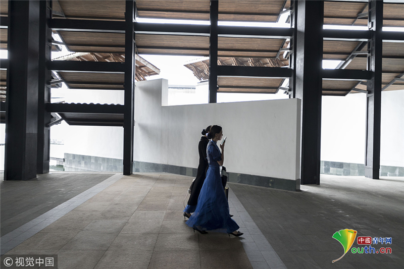 來自浙江傳媒學(xué)院的禮儀志愿者們正在進(jìn)行緊張有序的集中訓(xùn)練。圖片作者:浙江日?qǐng)?bào) 馮賀/視覺中國