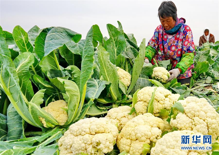 11月5日,唐山海港經(jīng)濟(jì)開發(fā)區(qū)王灘鎮(zhèn)東高各莊村的菜農(nóng)在收獲菜花。