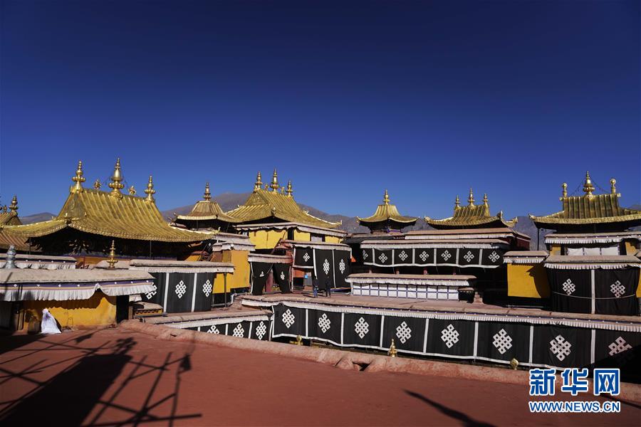 修繕后的布達(dá)拉宮金頂群(11月7日攝)。