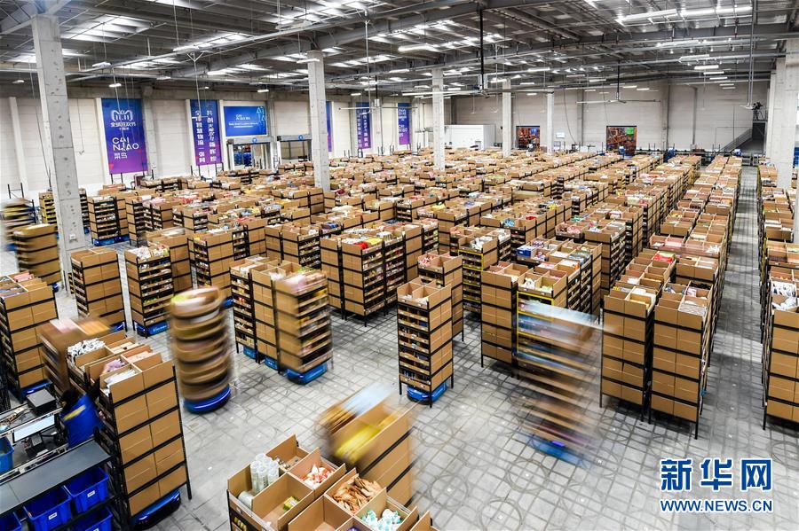 11月8日,智能搬運(yùn)機(jī)器人在倉(cāng)庫內(nèi)進(jìn)行搬運(yùn)作業(yè)。