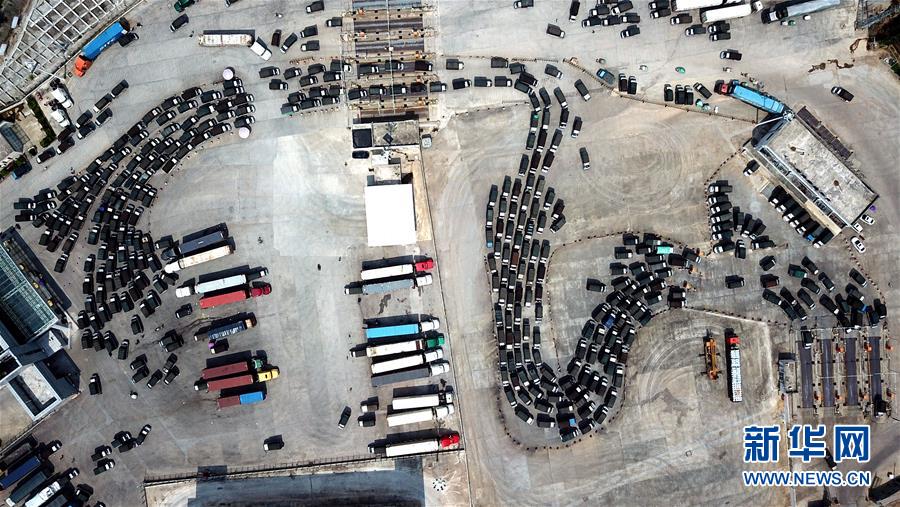 廣西寧明縣愛店口岸的互市車輛在進出關(guān)口(9月7日無人機拍攝)。新華社記者 張愛林 攝