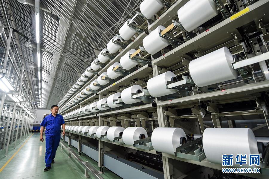 蘇州市吳江區(qū)盛澤鎮(zhèn)一家絲綢公司的工人在車間進(jìn)行絡(luò)絲作業(yè)(2017年5月20日攝)。 新華社記者 李響 攝