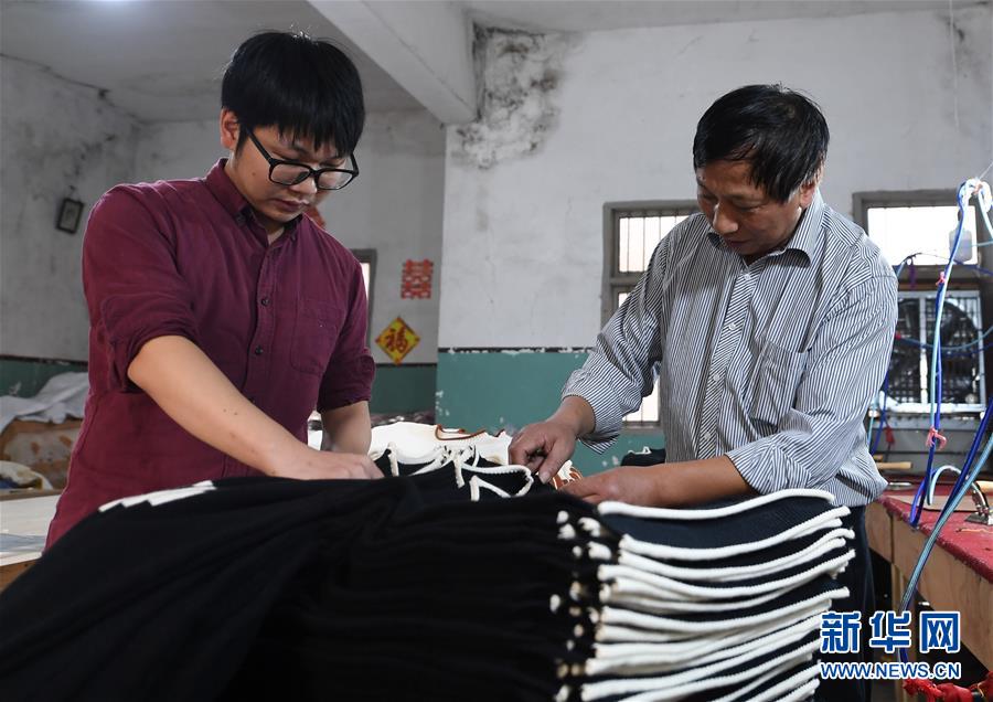 在蘇州市吳江區(qū)七都鎮(zhèn)開弦弓村,“90后”村民姚凌超(左)和父親姚玉坤在自家針織衫加工作坊里整理產(chǎn)品(10月23日攝)。近年來(lái),開弦弓村形成了化纖紡織、針織衫編織和水產(chǎn)養(yǎng)殖三大產(chǎn)業(yè),2017年村集體收入268萬(wàn)元,農(nóng)民人均可支配收入3萬(wàn)多元。 新華社記者 季春鵬 攝