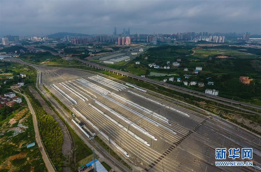 這是廣西南寧動(dòng)車所內(nèi)準(zhǔn)備發(fā)往各地的動(dòng)車組列車(7月1日無人機(jī)拍攝)。 近年來,廣西在海、陸、空立體式推進(jìn)與東盟國家的互聯(lián)互通,扎實(shí)推進(jìn)“高速縣縣通、高鐵市市通、民航片片通、內(nèi)河條條通”建設(shè)。目前高鐵運(yùn)營里程1751公里,高速公路總里程突破5000公里,沿海和內(nèi)河港口年吞吐能力分別達(dá)2.5億噸和1.1億噸,機(jī)場旅客年吞吐能力近3000萬人次,內(nèi)外交通便捷度全面提升。 新華社記者 黃孝邦 攝