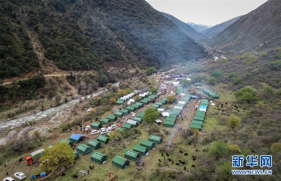 10月19日拍攝的在米林縣派鎮(zhèn)尼定村搭建的安置點(diǎn)。 記者從西藏自治區(qū)林芝加拉村雅魯藏布江堰塞湖災(zāi)情應(yīng)急搶險(xiǎn)工作第二場新聞發(fā)布會(huì)上獲悉,19日13時(shí)30分,雅魯藏布江米林縣堰塞體上游水位超過堰塞體,開始自然過流,上游水位正在緩慢下降。目前,各項(xiàng)搶險(xiǎn)救援工作正在有序開展。 新華社記者 覺果 攝
