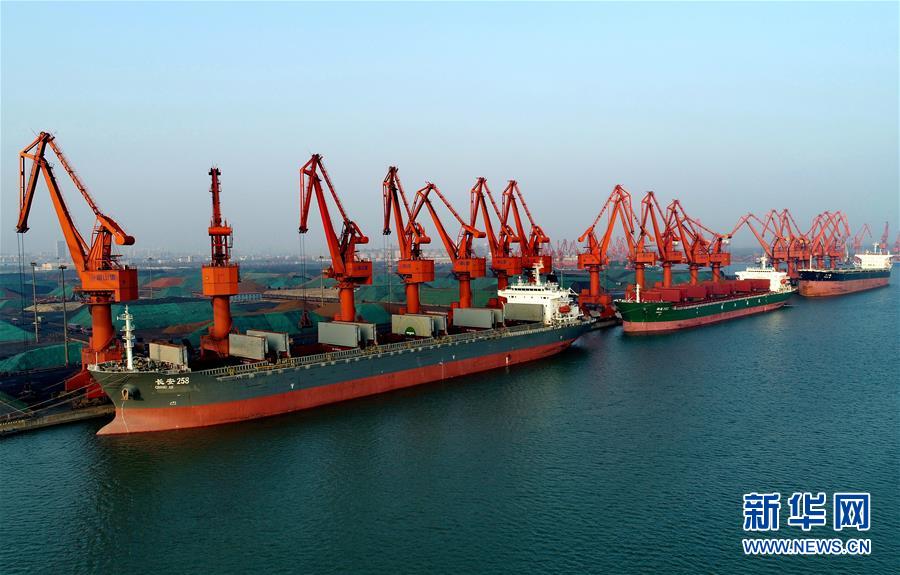 輪船靠泊在唐山港京唐港區(qū)散貨碼頭卸載(11月12日無人機拍攝)。記者從河北省交通運輸廳港航管理局獲悉,今年1至10月,河北港口完成貨物吞吐量達9.5億噸,同比增長4.3%。 新華社記者 楊世堯 攝