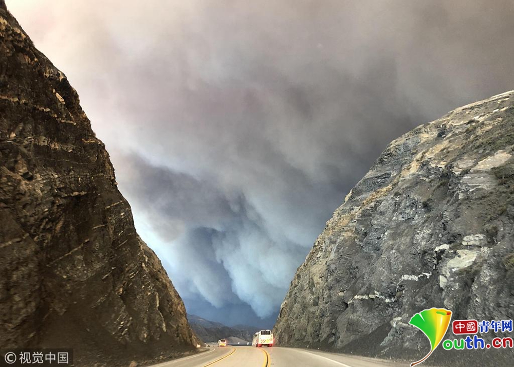 圖為文圖拉郡內山火引發(fā)的濃煙。