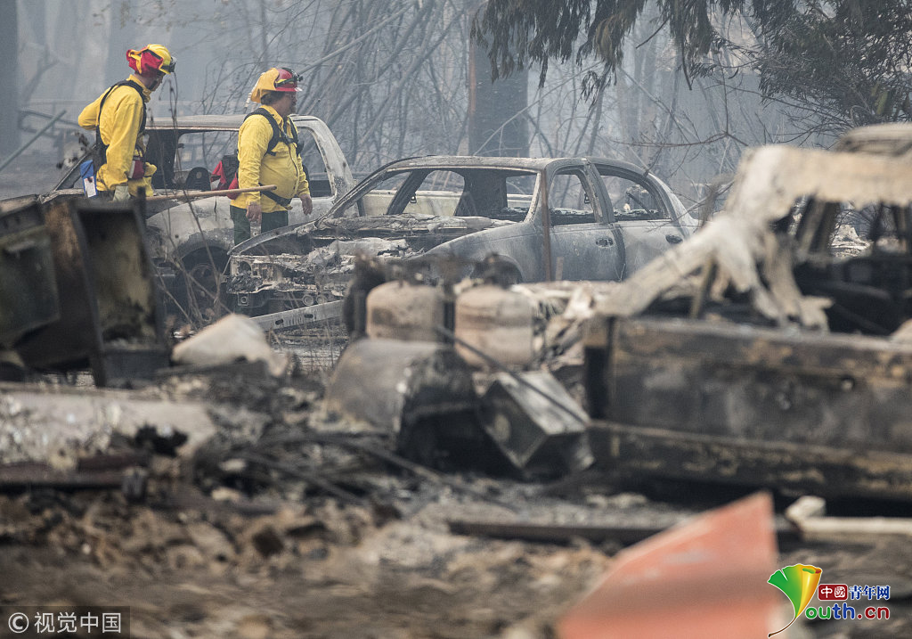 11月13日,在美國加利福尼亞州天堂鎮(zhèn),搜救人員在山火過后的廢墟工作。