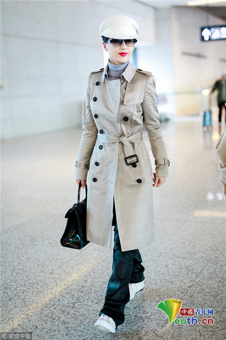 董潔素面朝天現身機場