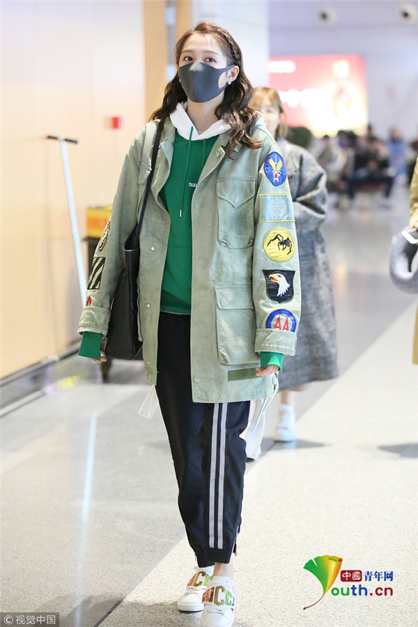 關曉彤穿男友風外套酷中帶甜 摘口罩露清純美貌