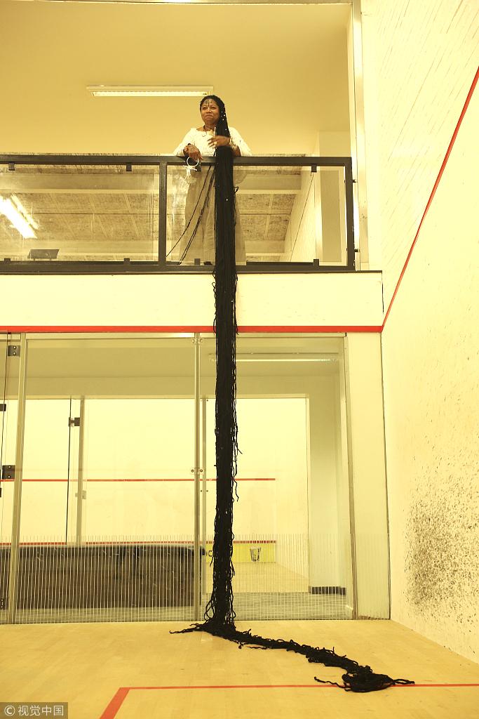 當(dāng)?shù)貢r(shí)間2018年9月14日,英國(guó)韋靈伯勒,正在英國(guó)旅行的Asha Mandela來自美國(guó)佛羅里達(dá)州,是世界上頭發(fā)最長(zhǎng)的女人。