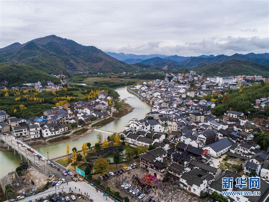 11月19日無人機(jī)航拍的河橋古鎮(zhèn)。 新華社記者 徐昱 攝