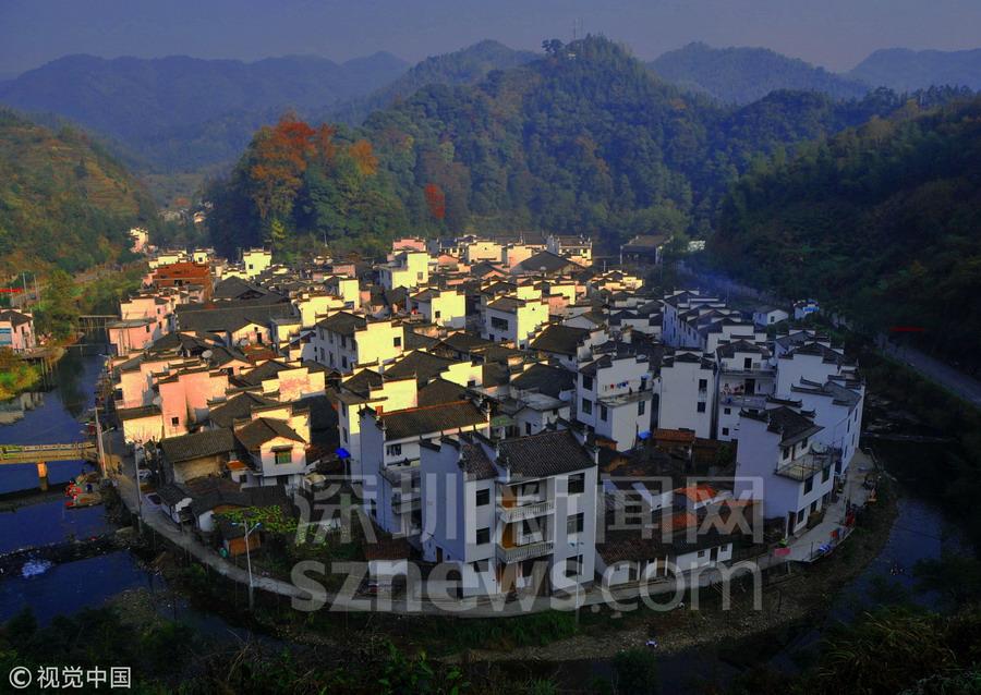 深圳新聞網(wǎng)訊 四面青山環(huán)繞,小河成大半圓形圍繞一周,眼前這個(gè)山環(huán)水繞的小村莊被稱為“中國最圓的村莊”,沿山間小路建設(shè)的臺階而上,站在一處觀景臺往下看,這個(gè)村子的形狀在山水襯托下,宛如一個(gè)圓形的島嶼。
