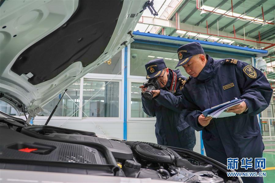 11月19日,重慶海關(guān)的工作人員在口岸車檢中心對(duì)首趟中歐班列商品車專用車運(yùn)輸國際班列運(yùn)輸?shù)倪M(jìn)口整車進(jìn)行查驗(yàn)。