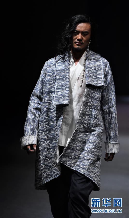 模特在AJ-NAMO藏裝秀上展示藏族設(shè)計(jì)師阿佳娜姆設(shè)計(jì)的時(shí)裝(11月18日攝)。 新華社記者 普布扎西攝