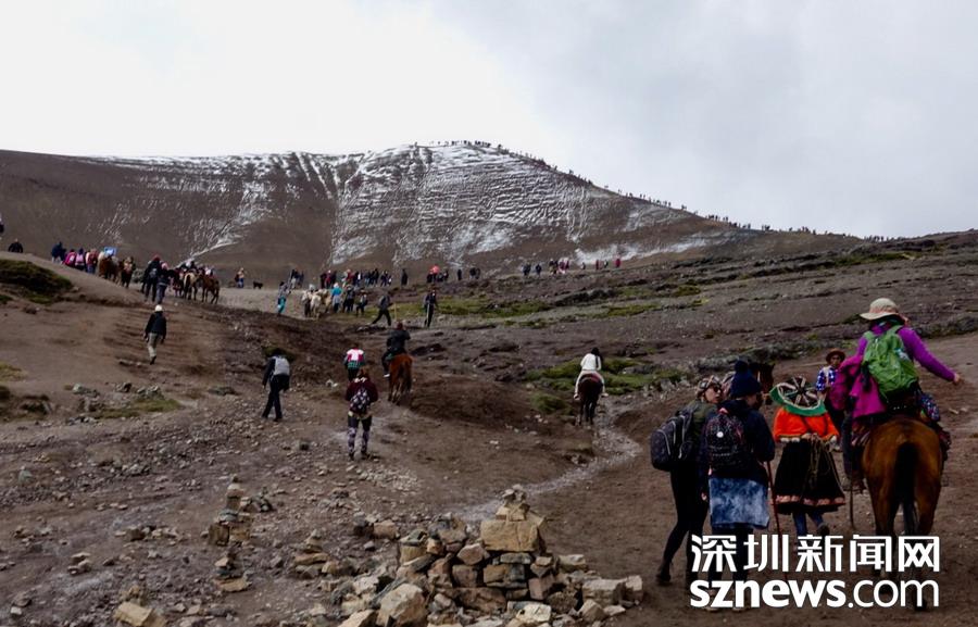 深圳新聞網(wǎng)訊   彩虹山被當(dāng)?shù)厝朔Q為維昆尼卡。深藏于秘魯庫斯科古城附近的安第斯山脈之中,多年來它一直隱藏在冰雪之下,據(jù)說是因?yàn)闇厥倚?yīng),雪線升高露出真容,才于2016年被發(fā)現(xiàn),并迅速成為世界知名景點(diǎn)。這里可以觀賞到的還有冰川、高山草甸、羊駝以及當(dāng)?shù)厣贁?shù)民族的風(fēng)情。李仁奇攝