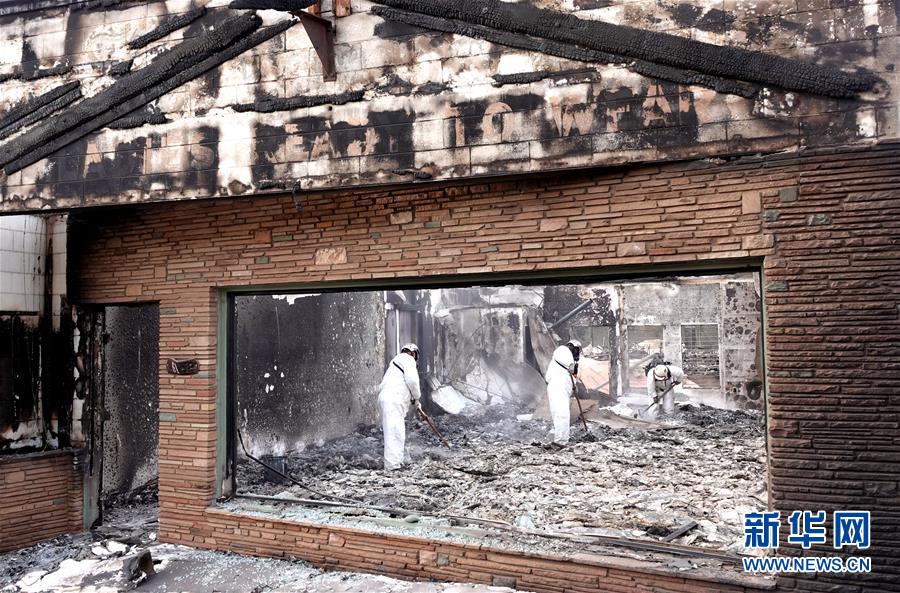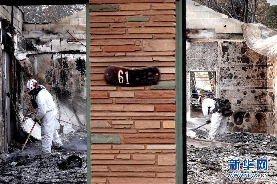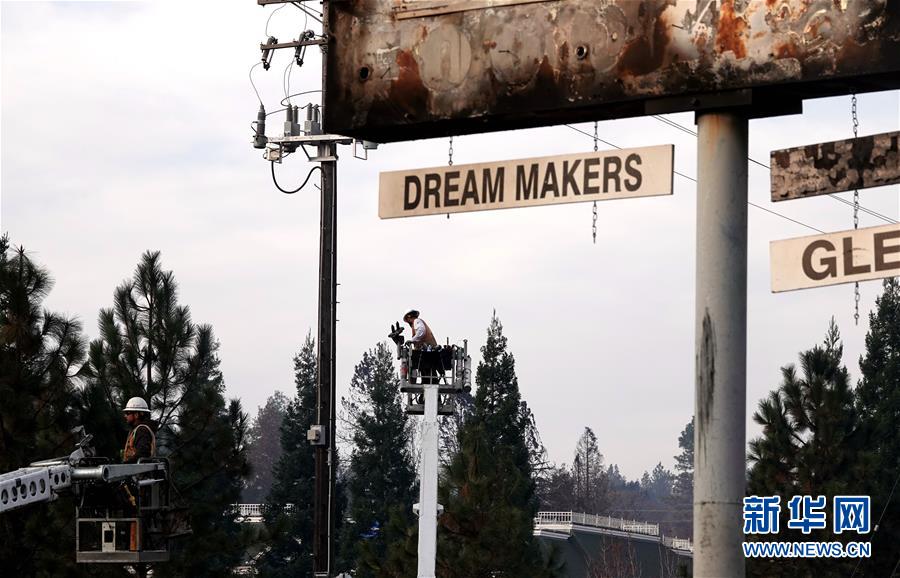11月20日,在美國加利福尼亞州比尤特縣天堂鎮(zhèn),救援人員在災區(qū)工作。