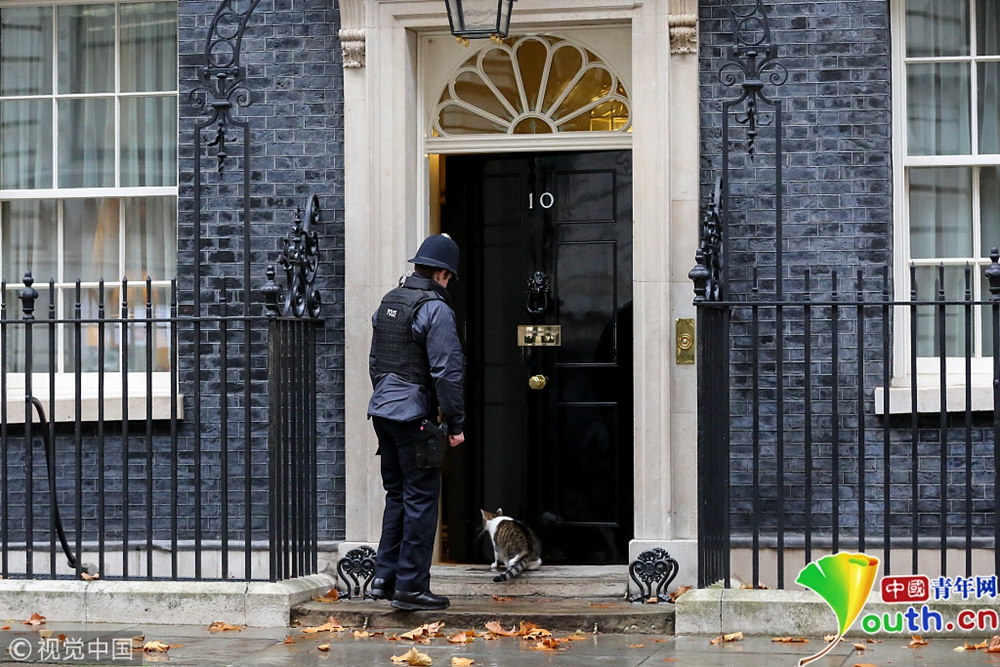 2018年11月22日訊,當(dāng)?shù)貢r間2018年11月20日,英國倫敦,在英國天空電視臺當(dāng)日就英“退歐”相關(guān)會議進(jìn)行直播報道時,攝像機(jī)意外捕捉到了一副畫面:被關(guān)在門外的拉里起先“安靜且耐心地”蹲坐在唐寧街10號的黑色大門前,過了一會兒它淡淡地撇了一眼正在不遠(yuǎn)處執(zhí)勤的警察。后者顯然立馬接收到了“首席貓”的眼神示意,他快速走上前來,替拉里敲開門,助它重返溫暖的室內(nèi)。據(jù)悉,唐寧街10號那扇赫赫有名的黑色大門只能由內(nèi)部打開。