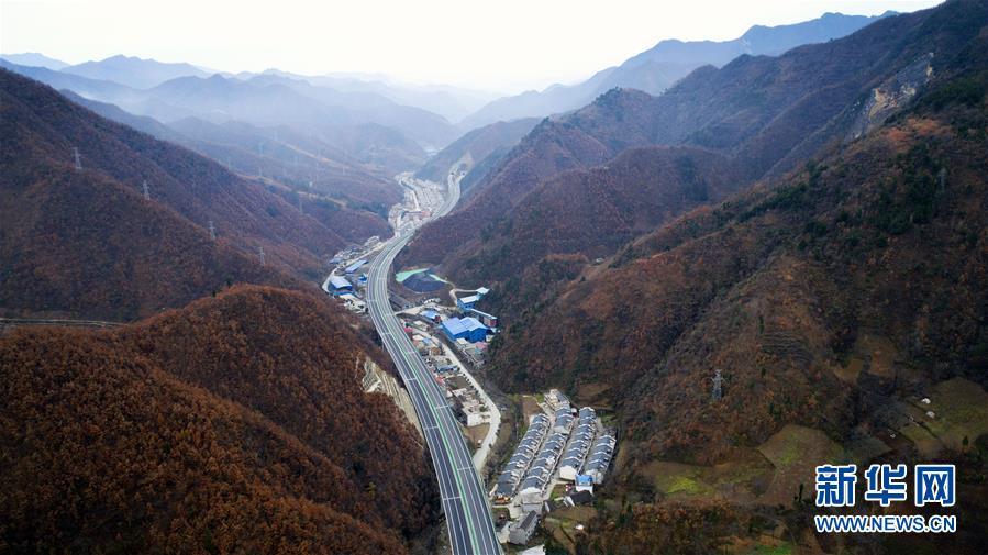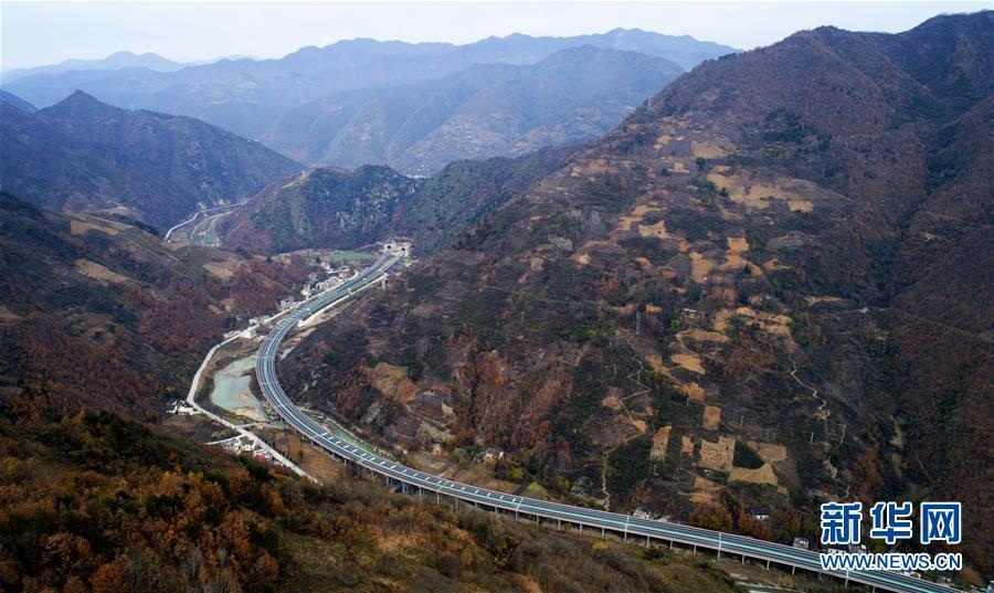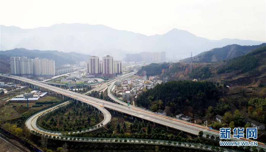 11月20日拍攝的水陽(yáng)高速公路與福銀高速公路相接的樞紐互通式立交(無(wú)人機(jī)拍攝)。 近日,記者從陜西省交通建設(shè)集團(tuán)公司了解到,陜西柞水至山陽(yáng)高速公路已全線貫通即將通車。據(jù)介紹,(柞)水(山)陽(yáng)高速公路全長(zhǎng)78.8公里,開通后將實(shí)現(xiàn)包茂高速、福銀高速在陜南商洛地區(qū)的連接,開辟出秦嶺南麓的一條橫向高速大通道,對(duì)完善陜西高速公路路網(wǎng)結(jié)構(gòu)、促進(jìn)陜南區(qū)域經(jīng)濟(jì)發(fā)展、加快山區(qū)群眾脫貧致富具有重要意義。 新華社記者劉瀟攝