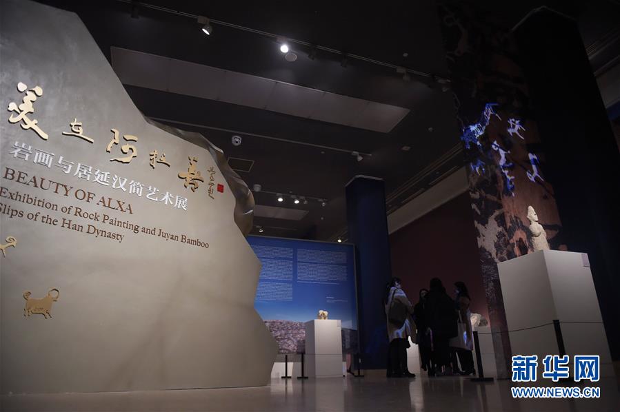 11月21日,觀眾在中國美術(shù)館參觀“美在阿拉善—巖畫與居延漢簡藝術(shù)展”。新華社記者 魯鵬 攝
