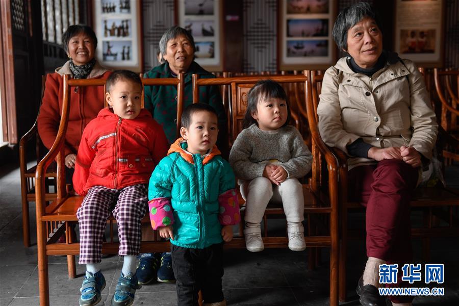 11月20日,在浙江海寧市南關(guān)廂歷史街區(qū),張坤榮(左三)在表演皮影戲。新華社記者黃宗治攝